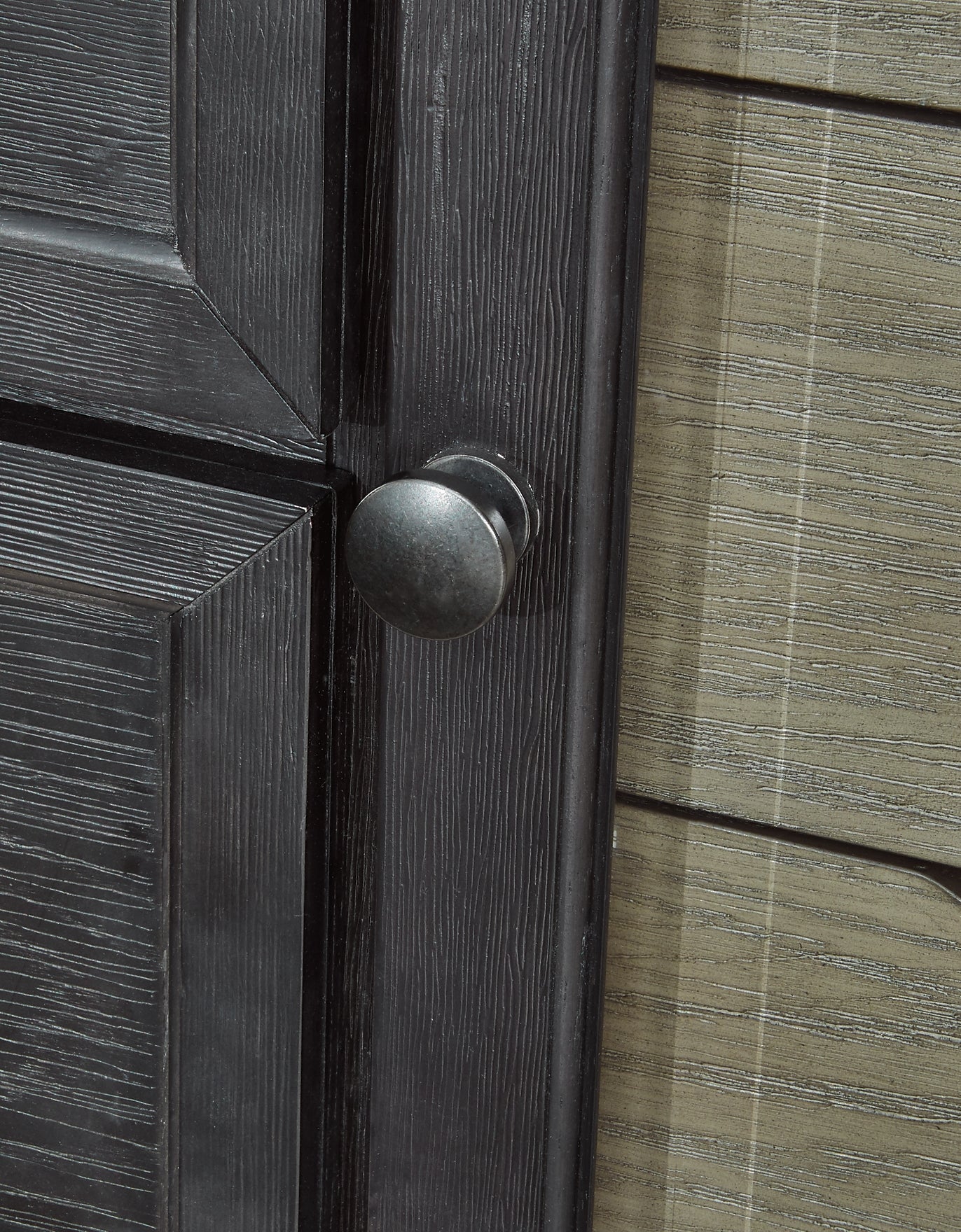 | Details | B989B5: Includes California king panel headboard, storage footboard, and rails with roll slats, Made with hardwood solids, select oak veneers and engineered wood, Two-tone finish (brushed black and dusty grayish brown wood tone), Headboard with picture frame moulding, Footboard with two deep drawers, Smooth-gliding soft-close drawers with fully finished interiors and dovetail construction, Sleek drawer pulls with black finish, Bed does not require additional foundation/box spring; accommodates most zero clearance adjustable bases with the addition of a bunkie board, Mattress available, sold separately, Assembly required, B989B1: Includes dresser and mirror, Made with hardwood solids, select oak veneers and engineered wood, Two-tone finish (brushed black and dusty grayish brown wood tone), Sleek drawer pulls with black finish, 11 soft-close, smooth-gliding drawers with fully finished interiors and dovetail construction (top drawers felt lined), 5 drawers with brushed black finish; 6 drawers with grayish brown wood tone, 3 drawers located behind each door, Mirror mounts to back of dresser, Assembly required, | |