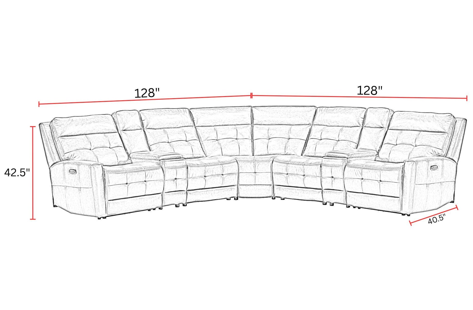128.0"W x 114.75"D x 42.5"H - 531.6 lb