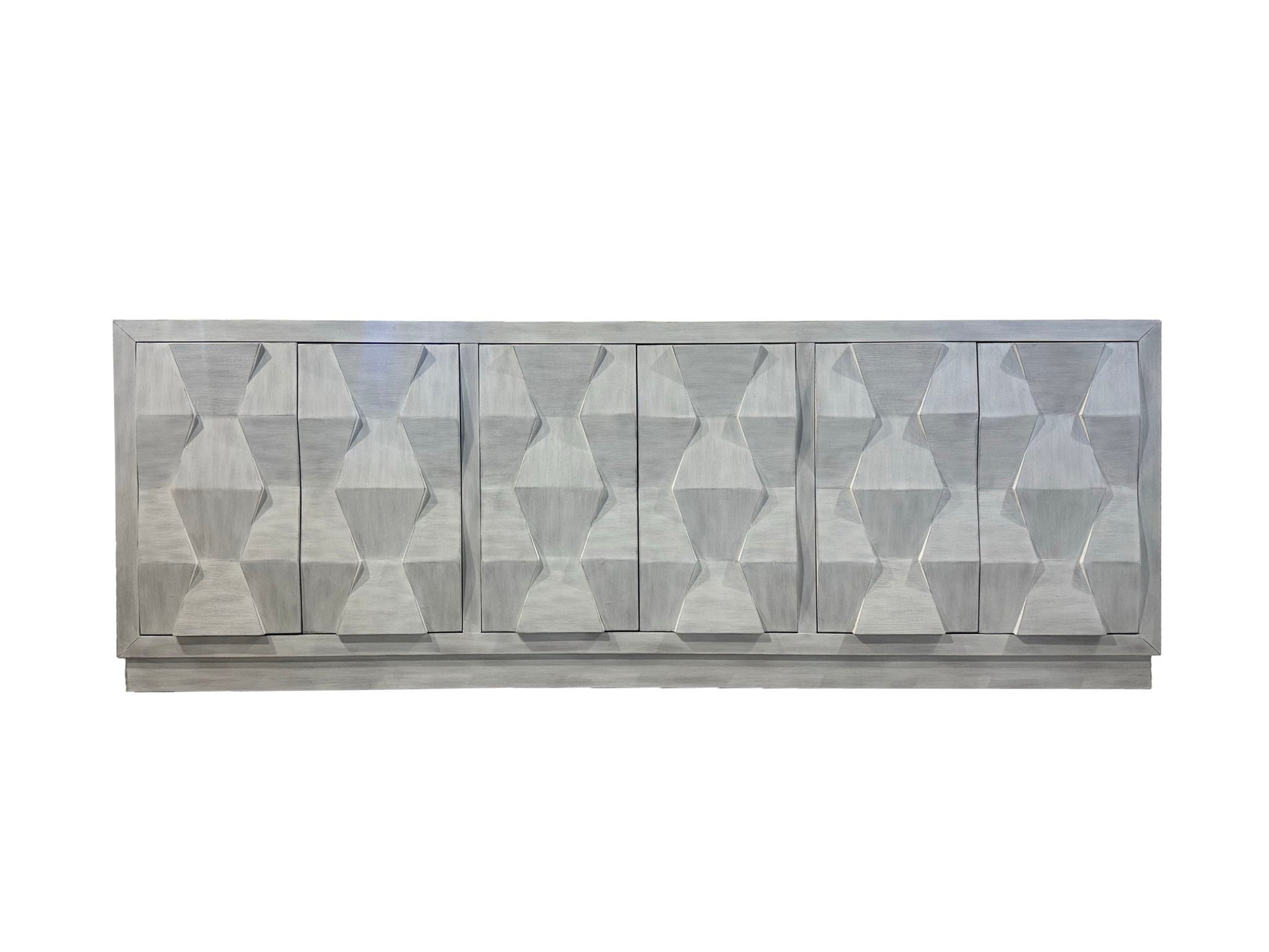 The Cortina console is a must-have for any unique home. It features a distinctive geometric design on the doors and a sturdy base for stability. This console has push-to-open doors for ease of use and is equipped with a hidden drawer and adjustable shelves, allowing for extra and always-needed storage.