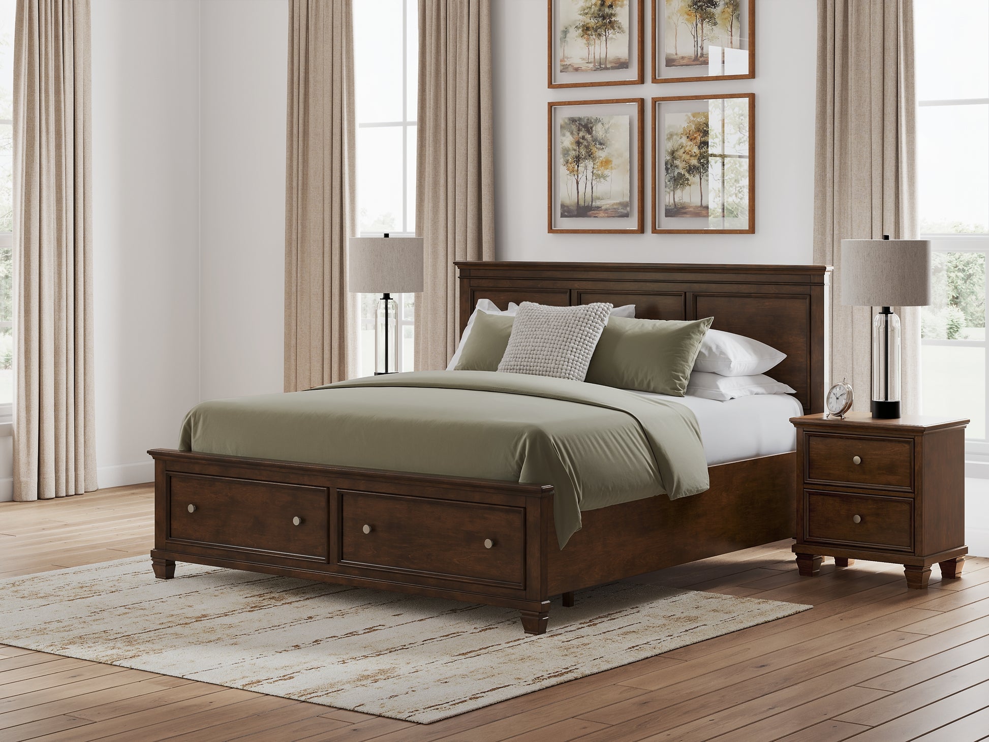 Lanolee King Panel Storage Bed, Dresser, Mirror and Nightstand