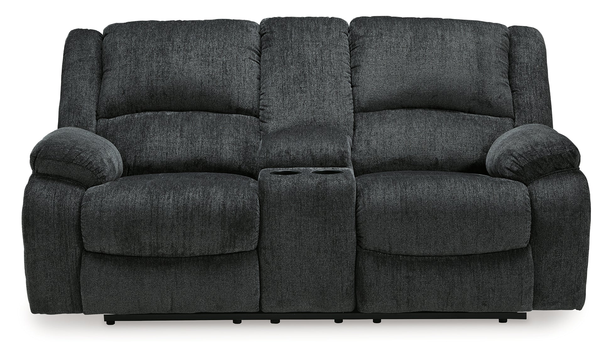 Built for luxury, this power reclining loveseat with center console lets you kick back in reliable style. The thick, softly textured chenille upholstery provides a comfy surface on which to lounge. With bustle back construction and thickly cushioned armrests, this piece gives you the dependable, powered support you need to unwind with the convenience of the center console to ease your evening.
