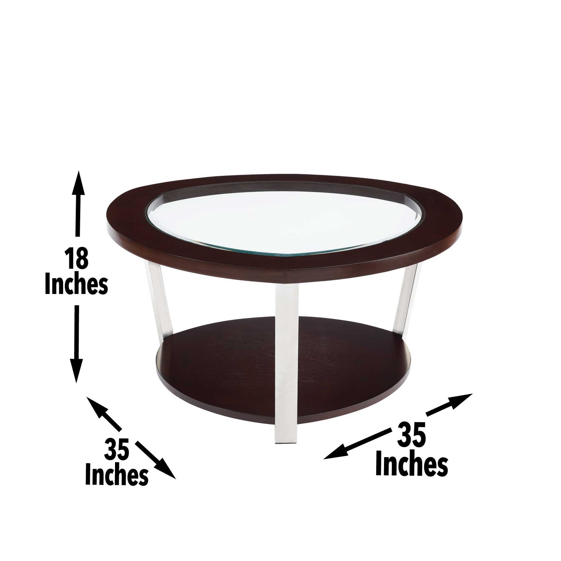 A contemporary styled occasional Cocktail Table of stainless steel, wood and glass construction, Duncan features a spherical triangular shaped top that will instantly add interest to any room. A rich mixture of elements and espresso finish combine for a sophisticated modern look.