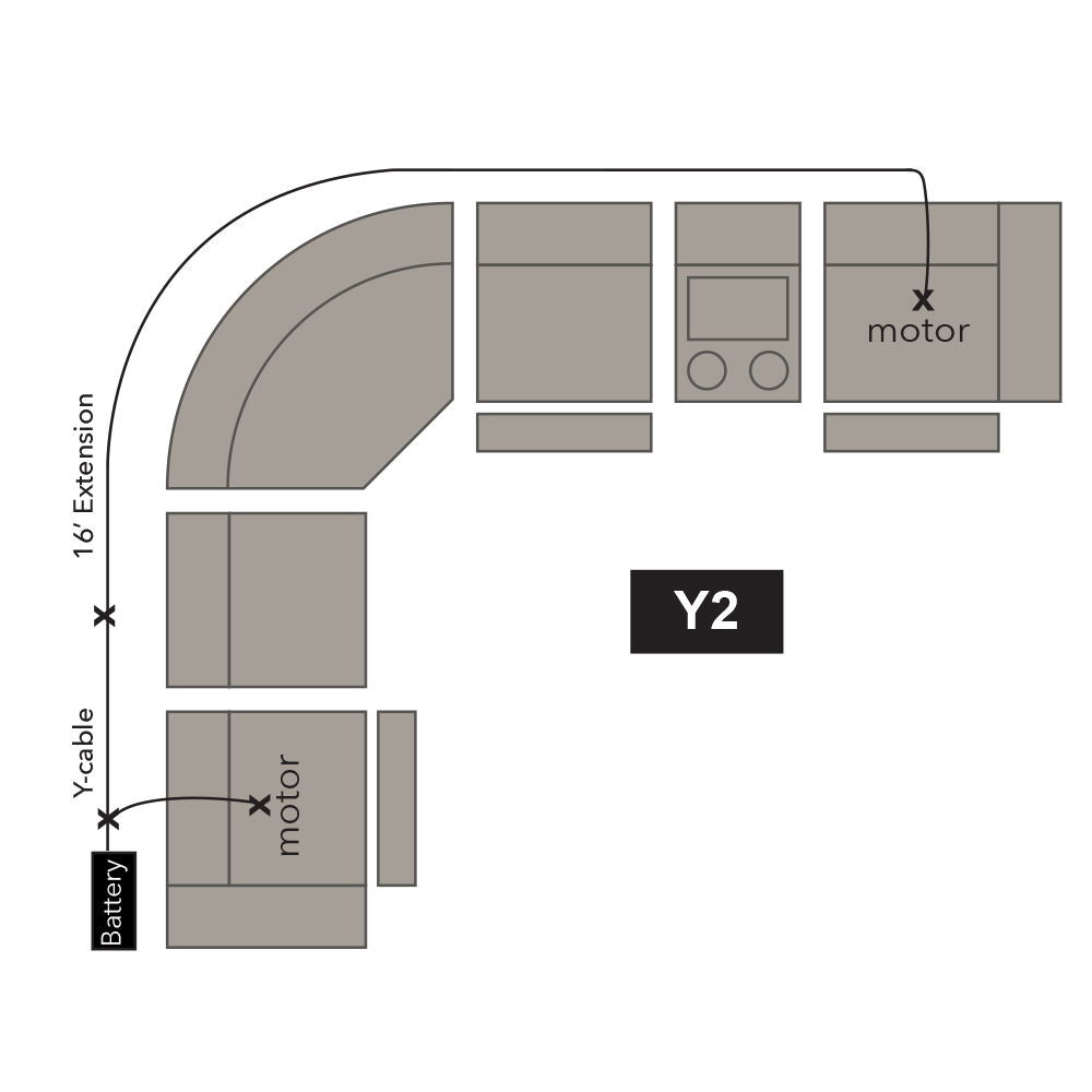 The FreeMotion Y2 Kit connects a FreeMotion battery to 2 independent reclining modular pieces located MORE than 3 feet apart.