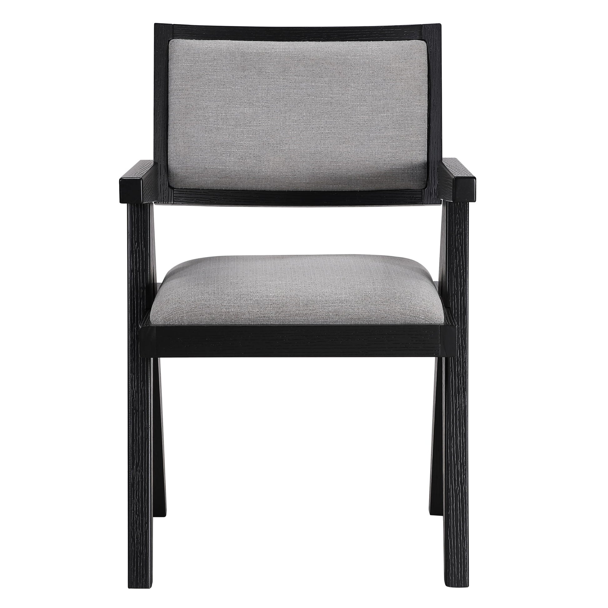 Modern styling meets unparalleled comfort in the Magnolia Arm Chair. A solid wood frame supports a unique design that combines angular lines with an ergonomically shaped back support for a comfortable and stylish seat. The linen-look polyester cover makes cleaning a breeze and the solid wood frame finished in a lustrous black makes for a durable chair that will stand the test of time.