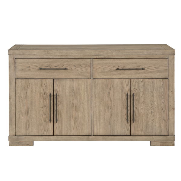 Napa presents contemporary styling in a Server that adds display and space to any living area. This functional Server has a warm dusky finish that is perfect for home environments. Two shelves for wine storage are accented with a glass top so you can show off your collection and the piece comes along with two additional drawers and two glass front doors for additional storage and display. The sleek modern lines are accented with a relaxed silhouette that allows it to be dressed up or down to your preference.