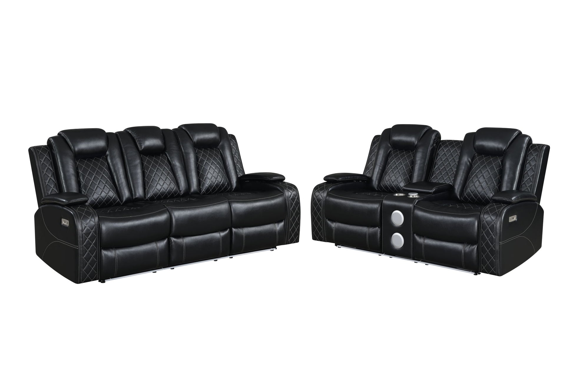 The Orion II Reclining Sofa Set offers both comfort and functionality. Crafted with a sturdy frame of hardwoods and manufactured wood, it promises durability and strength. The upholstery, made of 80% polyester and 20% PU, provides a soft, breathable seating experience. Smooth reclining mechanisms allow for easy adjustments, letting you relax at your ideal angle. High-density foam and pocket coil cushions ensure support and long-lasting comfort. Its sleek design features white contrast stitching, adding a stylish touch, while lift-up pillowed arms hide storage compartments for added practicality. The center console includes a storage cubby, drink holders, and USB ports, with Bluetooth speakers and theater lighting for a complete entertainment experience.