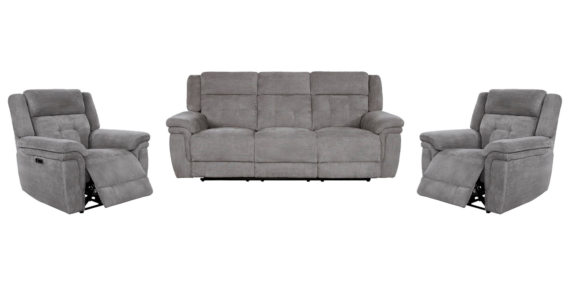 Richland - Power Reclining Sofa, Loveseat And Recliner - Bristol Gray