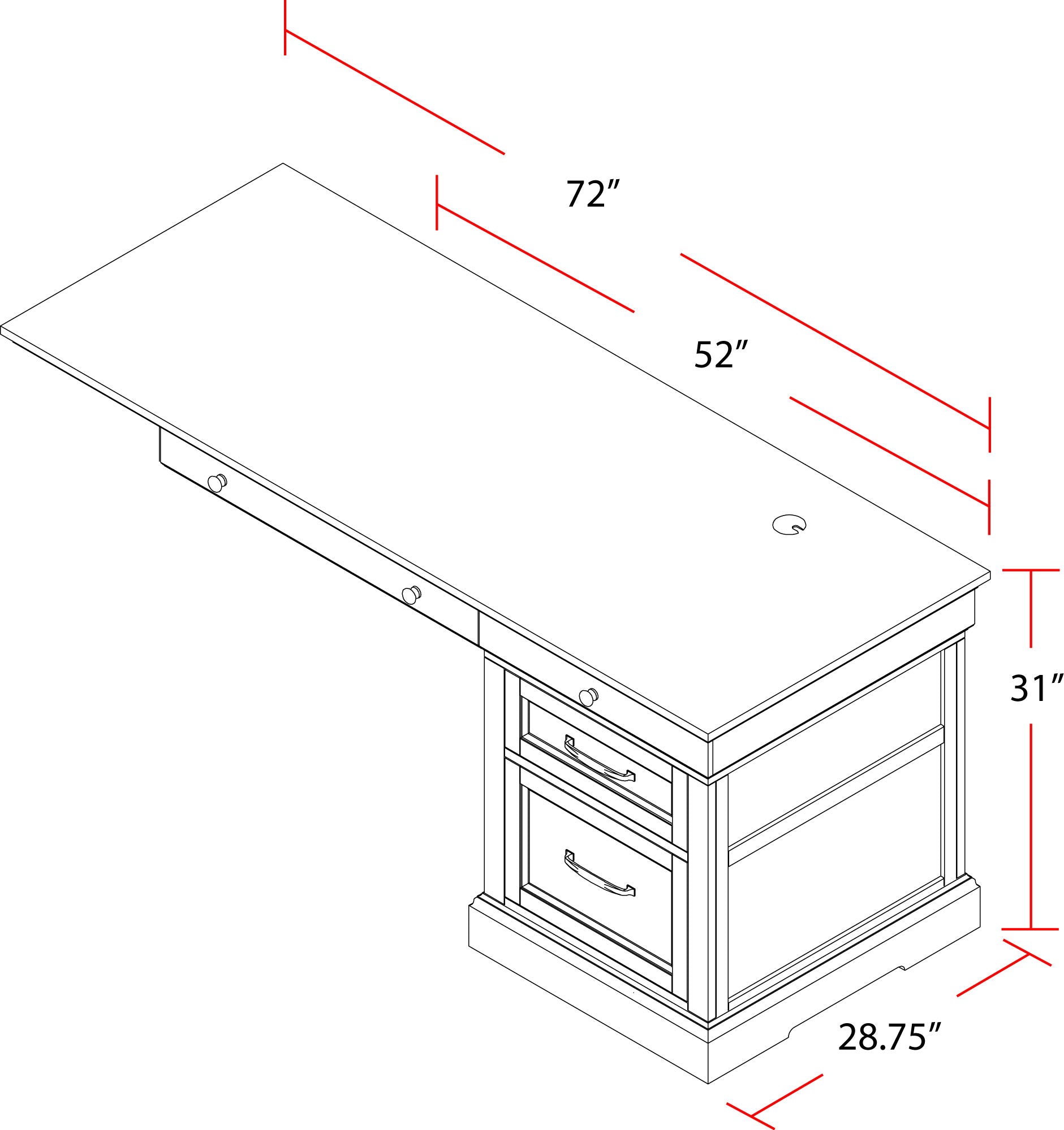 52.0"W x 29.0"D x 31.5"H - 167.2 lb