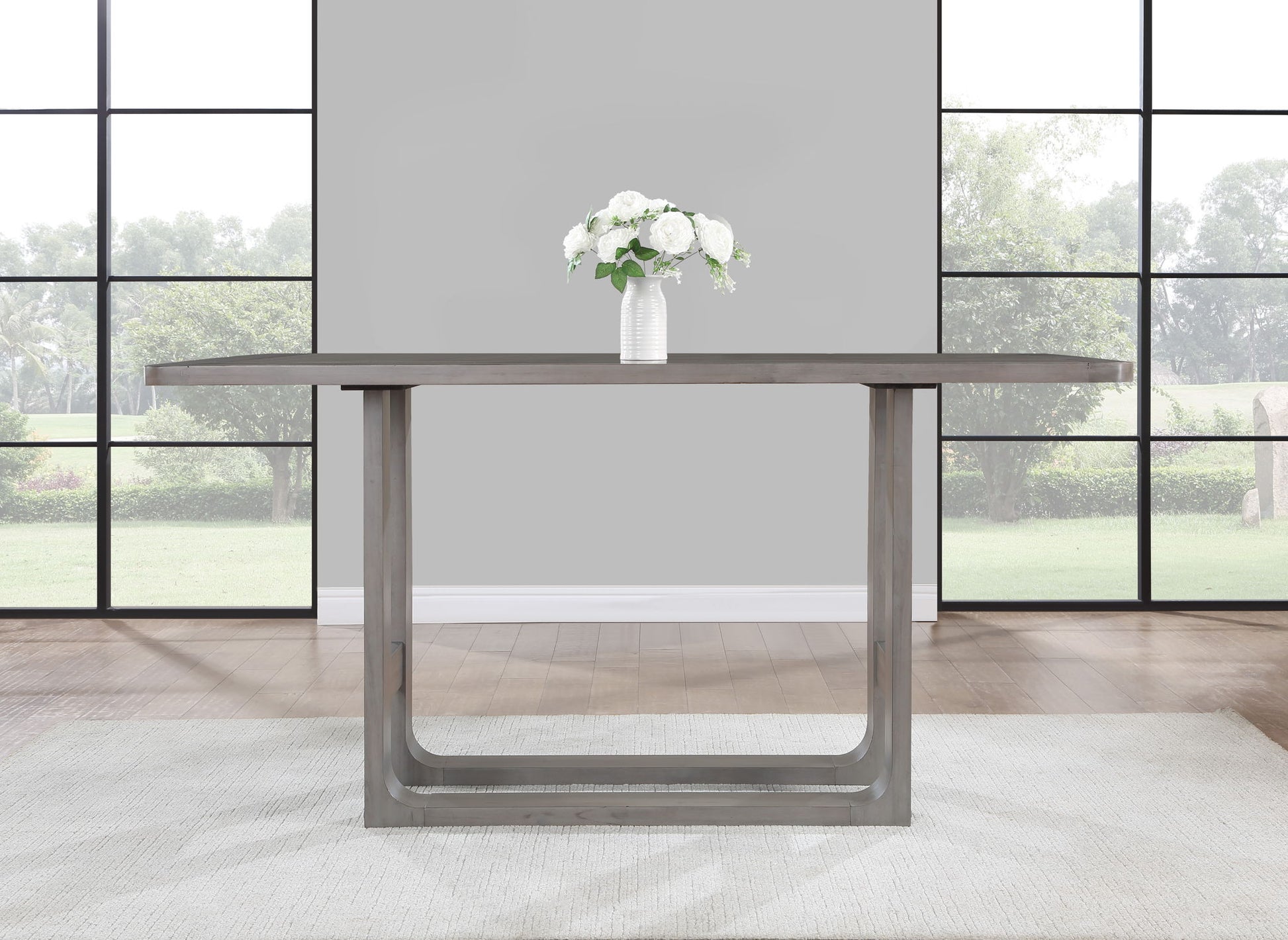 A perfect setting for morning coffee or a formal evening dinner, the Toscana 72-inch dining table brings an elevated sense of style to your dining area. Cozy enough for a small setting but large enough to seat six, this table is a model of modern style blended with rustic mission influences. Clean angular lines are softened with the sled table base and accented by a burnished aged gray finish for a neutral tone that will accent any decor – and the 36-inch high profile makes for an easy dining or work while standing height.