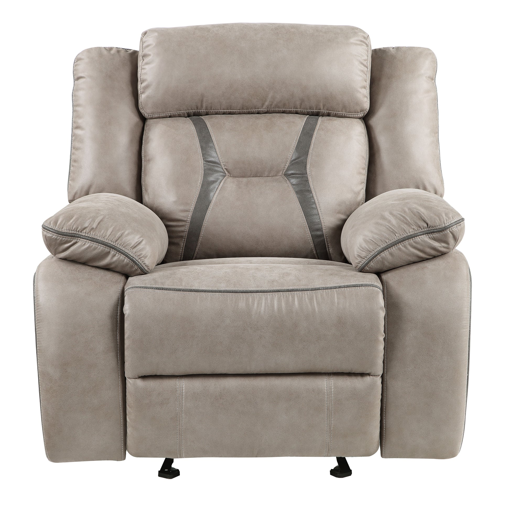 Comfortable and cozy, the Tyson manual reclining Glider Recliner provides a motion experience in a compact package. Reclining opens at the flick of the button and glides when closed. The grey leatherette cover is soft to the touch, breathes for added comfort and cleans easily with the wipe of a damp cloth.